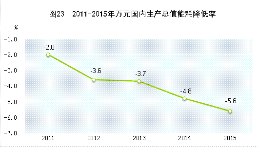 初步核算,全年能源消费总量43.0亿吨标准煤,比上年增长0.9%。煤炭消费量下降3.7%,原油消费量增长5.6%,天然气消费量增长3.3%,电力消费量增长0.5%。煤炭消费量占能源消费总量的64.0%,水电、风电、核电、天然气等清洁能源消费量占能源消费总量的17.9%。全国万元国内生产总值能耗下降5.6%。工业企业吨粗铜综合能耗下降0.79%,吨钢综合能耗下降0.56%,单位烧碱综合能耗下降1.41%,吨水泥综合能耗下降0.49%,每千瓦时火力发电标准煤耗下降0.95%。